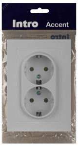 Розетка Intro Accent 6-205-01 2X2P+E Schuko, 16А-250В, IP20, СУ, AL/CU, белый