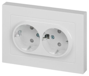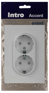 Розетка Intro Accent 6-208-01 , 2X2P+E Schuko со шторками, 16А-250В, IP20, СУ, AL/CU, белый