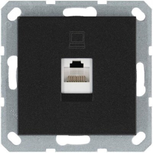 Механизм Jasmart серии ''G'' в цвете черный матовый розетки компьютерной с разъёмом RJ45 категория 5е предназначен для удобного и быстрого подключения вашего компьютера к локальной вычислительной сети. Лицевые детали из поликорбоната, устойчивого УФ-излучению. Усиленные прямые монтажные лапки для лучшей фиксации механизма в монтажной коробке.