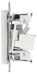 Розетка информационная двойная серии Intro Accent скрытой установки механизм цвет белый 6-304-01. Выполнена из негорючего термопласта. Монтаж в подрозетник производится и на лапки, и на винты. Рамка приобретается отдельно. В серии представлены рамки до 5 постов: на 1 пост - 6-501-хх, на 2 поста - 6-502-хх, на 3 поста - 6-503-хх, на 6 поста - 4-504-хх, на 5 постов - 6-505-хх (где хх - цветовой код: 01 - белый, 01М - матовый белый, 02 - слоновая кость, 03 - алюминий, 04 - шампань, 05 - антрацит, 06 - перламутр, 07 - графит, 08 - бронза, 09 - титан, 10 - венге, 11 - сосна)