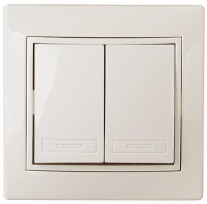 Переключатель Intro Plano 1-107-02 двухклавишный, 10А-250В, IP20, СУ, слоновая кость