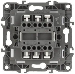 Выключатель перекрёстный/промежуточный, двойной серии Эра 12 скрытой установки механизм, цвет белый 12-1112-01. Номинальные хар-ки 10А 250В. Сделан из поликарбоната, оснащено автоматическими клеммами для быстрой и надёжной фиксации жил кабеля в механизме. Парные клеммы обеспечивают соединение шлейфом. Монтаж в подрозетник производится на винты. Рамки приобретаются отдельно. Рамки Эра 12: 1 пост 12-5001-хх, 2 поста 12-5002-хх, 3 поста 12-5003-хх, 4 поста 12-5004-хх, 5 постов 12-5005-хх. Рамки Эра 12 Сатин: 1 пост 12-5101-хх, 2 поста 12-5102-хх, 3 поста 12-5103-хх, 4 поста 12-5104-хх, 5 постов - 12-5105-хх (хх - код цвета: 01-белый, 02-слоновая кость, 03-алюминий, 04-шампань, 05-антрацит, 06-чёрный, 07-ольха(белёный дуб-сатин), 08-вишня, 09-дуб, 10-венге, 11-сосна, 21-жёлтый, 22-оранжевый, 23-красный, 24-охра, 25-бордо, 26-лайм, 27-зелёный, 28-голубой, 29-синий).