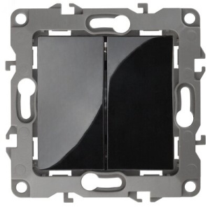 Выключатель перекрёстный/промежуточный, двойной серии Эра 12 скрытой установки механизм, цвет черный 12-1112-06. Номинальные хар-ки 10А 250В. Сделан из поликарбоната, оснащено автоматическими клеммами для быстрой и надёжной фиксации жил кабеля в механизме. Парные клеммы обеспечивают соединение шлейфом. Монтаж в подрозетник производится на винты. Рамки приобретаются отдельно. Рамки Эра 12: 1 пост 12-5001-хх, 2 поста 12-5002-хх, 3 поста 12-5003-хх, 4 поста 12-5004-хх, 5 постов 12-5005-хх. Рамки Эра 12 Сатин: 1 пост 12-5101-хх, 2 поста 12-5102-хх, 3 поста 12-5103-хх, 4 поста 12-5104-хх, 5 постов - 12-5105-хх (хх - код цвета: 01-белый, 02-слоновая кость, 03-алюминий, 04-шампань, 05-антрацит, 06-чёрный, 07-ольха(белёный дуб-сатин), 08-вишня, 09-дуб, 10-венге, 11-сосна, 21-жёлтый, 22-оранжевый, 23-красный, 24-охра, 25-бордо, 26-лайм, 27-зелёный, 28-голубой, 29-синий).