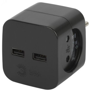 Новые тройники и удлинители с USB собственного дизайна ЭРА отличаются эргономичным конструктивом и удобством в использовании. Разветвители в форме кубика с закруглёнными углами выглядят оригинально и отличаются компактностью. Их удобно брать с собой в дорогу. Розетки утоплены в корпус, благодаря чему вилка плотно сидит в гнезде. Под USB-портами - объёмный логотип ЭРА. Разветвитель-кубик ЭРА в белом цвете - арт. Б0049531, в чёрном цвете - Б0049535. Тройник (адаптер) ЭРА с 2-мя розетками и 2-мя USB гнездами для зарядки портативных устройств. Идеален для зарядки мобильных телефонов и планшетов. Особенно актуален, когда в помещении мало источников подключения - можно из одной розетки сделать две и при этом ещё заряжать 2 устройства одновременно через USB. Максимальная мощность USB разъемов: 2400 мА.