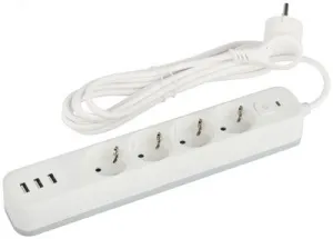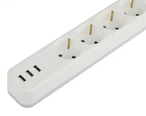 Сетевой фильтр USF-4es-3m-3xUSBA-W с базовой защитой с заземлением с выключателем 4 розетки+3xUSBA 3,1A 3м 10А белый