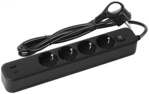 Сетевой фильтр USF-4es-1,5m-2xUSBAC-B с базовой защитой с заземлением с выкл. 4 розетки+2xUSBA+C 2,4A 1,5м 10А