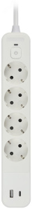 Сетевой фильтр USF-4es-3m-2xUSBAC-W с базовой защитой с заземлением с выключателем 4 розетки+2xUSBA+
