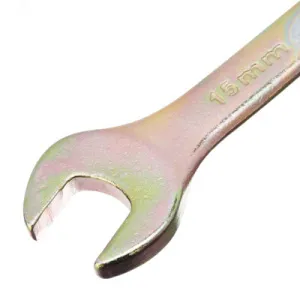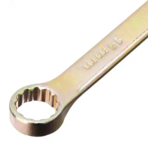 Комбинированный ключ Сибртех 14981, 15 мм, покрытый желтым цинком, предназначен для слесарно-монтажных работ с резьбовыми соединениями. Наличие рожкового и кольцевого зева делает ключ универсальным в применении. Накидная головка с 12-гранным профилем надежно удерживает крепеж, уменьшая риск его деформации. Ключ будет полезен при проведении строительных и ремонтных работ, пригодится для сборки и разборки оборудования, а также необходим в быту.