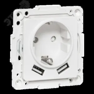 Стокгольм Механизм Розетки 1-местной с/з, USB 2A 16А винтовые клеммы белый с защ. штор. EKF