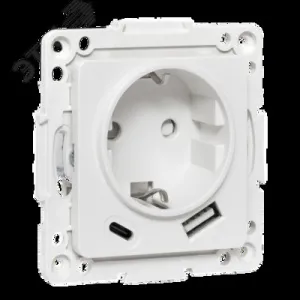 Стокгольм Механизм Розетки 1-местной с/з, USB A+C 16А винтовые клеммы белый с защ. штор. EKF