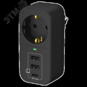 Адаптер сетевой c USB ФОТОН AM 16-1E-USB/A2C1, 16А, с заземл., 2 USB-A + USB-C, 2,4A, черный