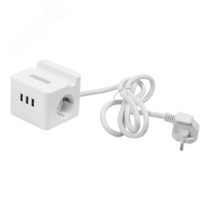 Удлинитель серии Standard с заземлением шнур 1,5м 2 гнезда 3 USB 16А держатель для телефона Белый ТМ