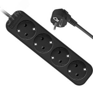 Удлинитель с заземлением M418 1.8 м, 4 розетки, черный