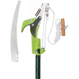 С удлиняющей телескопической ручкой. Применяется для ухода за кронами деревьев, а также за ветками, расположенными высоко от земли. Длина пилы 330 мм. Материал - сталь, лезвия из высокоуглеродистой стали с тефлоновым покрытием, пила из 65 Mn стали, ручка из углеродистой стали. L веревки - 3800 мм. Упаковка - блистер.