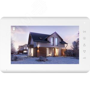 Монитор цветного видеодомофона 7 дюймов с сенсорными кнопками с поддержкой форматов CVBS (PAL / NTSC). Тонкий корпус 18мм со встроенным блоком питания. Hands-Free, 2 панели, 2 камеры, до 6-ти штук в параллель. Габариты 205х128х18 мм.