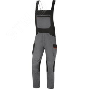 Полукомбинезон на бретелях, с застежкой брюк на молнию, дополнительным застегиванием на пуговицы по бокам. Большое количество накладных и прорезных карманов. Предназначен для защиты от общепроизводственных загрязнений и механических воздействий. Имеет усилительные накладки в области коленей в виде карманов для наколенников, застегивающихся на контактную ленту сбоку кармана.