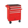 Инструментальная тележка предназначена для организации рабочего места в любом производственном помещении, станции технического обслуживания или авторемонтной мастерской. Особенности Корпус тележки Материал - листовая сталь Конструкция - сварная, с усиленными рёбрами жёсткости Допустимая нагрузка - до 680 кг Покрытие - порошковое, износостойкое, ударопрочное Полки Выдвижные, направляющие на роликовых подшипниках, съёмные Допустимая нагрузка - до 20 кг на каждую полку Клавишный замок (на каждой полке) Бирки для каждой полки (полоска из картона + защитная прозрачная лента) для возможности маркировки полки или описания комплектации Защитные коврики из мягкой вспененной резины (на каждой полке)