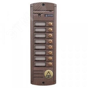 Антивандальная цветная видео панель нового образца на восьмерых абонентов системы PAL. Исполнение корпуса в современном дизайне для ''накладной'' установки из прочного алюминиевого сплава, покрытого ударопрочной порошковой краской. Обладает дополнительной влагозащитой и антикорозийностью. Вызывная панель данной модели сохраняет работоспособность при критических перепадах температуры среды ее применения. Кнопки вызова способны выдерживать фронтальные удары благодаря особенностям внутренней конструкции. Так же в ней реализована инновационная система интеллектуальной подсветки лица гостя, регулирующаяся в зависимости от дальности его расположения.