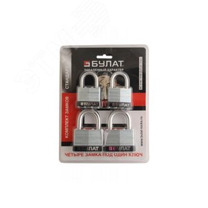 Замок навесной БУЛАТ ВС 0140/0150 под 1 ключ (компл. 4 шт)
