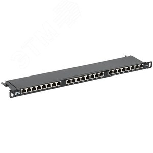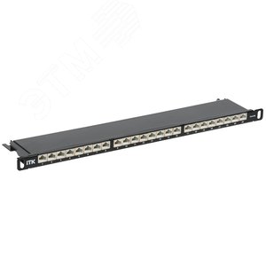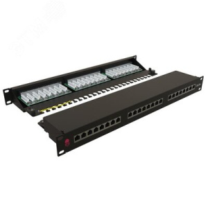 Патч-панель 19(1U), 24 порта RJ-45 полностью экранированная, категория 5e, Dual IDC, цвет черный