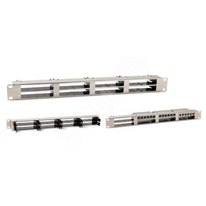 Патч-панель 19'' (1U), 24 порта RJ-45, кат. 6, с задним кабельным организатором, безинструментный