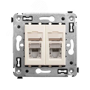 Розетка двойная компьютерная механизм + накладка, цвет Слоновая кость матовый с/у