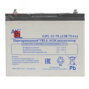 Аккумуляторная батарея GPL 12-75, 12В, 75Ач, вывод для подключения - отверстие под болт M6 (T6)