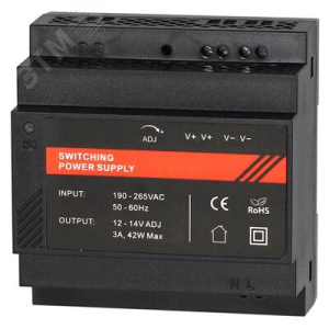 БП 12 VDC, 3 A, крепление на DIN-рейку, черный