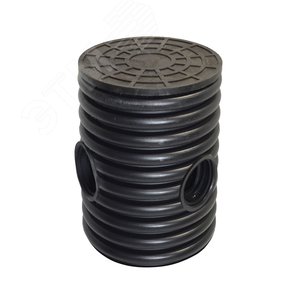 Колодец дренажный смотровой 460/400х1000 мм с тремя выходами 110 мм, дном и полимерной крышкой