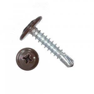 Саморез 4,2x16 с прессшайбой, сверло, цинк RAL 8017 Коричневый (100 шт/уп) Промрукав