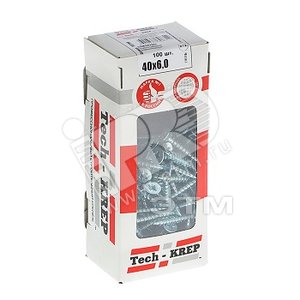 Шуруп универсальный 6х40 потайная головка, остроконечный, оцинкованный (100шт) - коробка