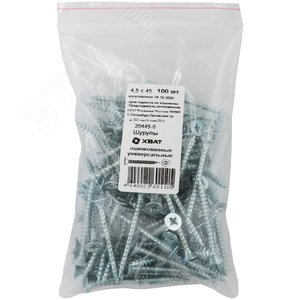 Шуруп универсальный 4,5х45 потайная головка, остроконечный, оцинкованный (100шт)