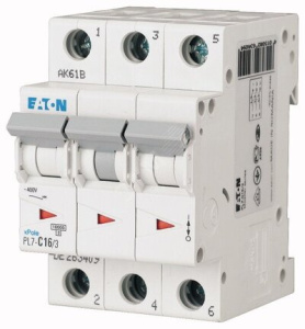 Выключатель автоматический 16А кривая отключения C 3 полюса отключающая способность 15 кА FAZ-C16/3
