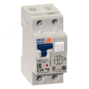 Выключатель автоматический дифференциального тока АВДТ с защитой от сверхтоков 2П 16А 30мА A OptiDin