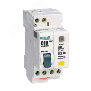 Выключатель автоматический дифференциального тока 1N 16A 30мА тип С ДИФ103 4.5кА | 16052DEK | DEKraf