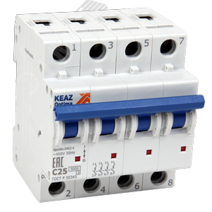 Выключатель автоматический четырехполюсный 25А C 6кА AC OptiDin BM63-4C25-УХЛ3