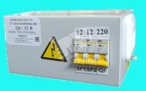 Ящик с понижающим трансформатором ЯТП 0.25 220/12В IP31 с тремя автоматами