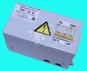 Ящик с понижающим трансформатором ЯТП 0.25 220/36В IP31 с тремя автоматами