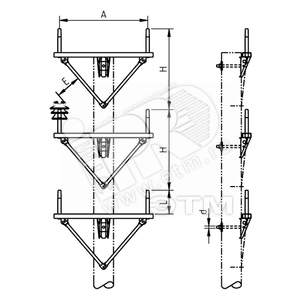 Траверса двухцепная промежуточная 20 кВ, A=800, H=750