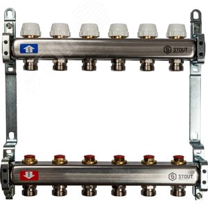 Блок коллекторный с ручными регулировочными клапанами 1'x6 выходов 3/4' НР евроконус