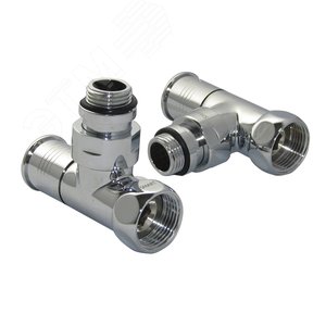 Комплект вентилей для полотенцесушителя угловой г/ш 1'х1/2' с круглой ручкой хром