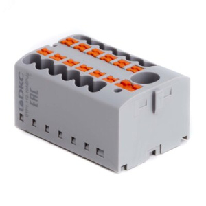 Блок распределительный, зажим push-in, 1 ввод 6 кв.мм, 6 точек подключения 2,5 кв.мм, серый