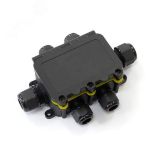 Коробка распределительная 6-вводная IP68 ПА66 40А 450В d5-14 мм 135х96х42 черная