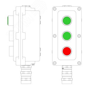 Пост управления взрывонепроницаемый из алюминия LCSD-03-B-MC-L1G(220)x1-P1B(11)x1-P1R(11)x1-PCMB-KAE
