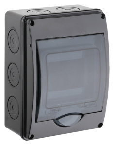 Щиток о/п на 5 мод.с вертик.двер.200х150х98мм черный Тусо
