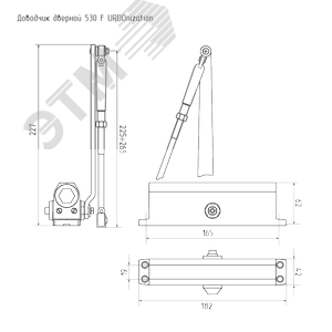Доводчик двери c тягой EN 3-6, 40 - 120 кг, 1400 мм, двухскоростной, тормоз открывания, задержка зак