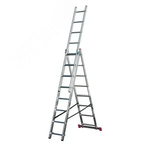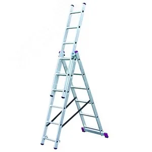 Лестница трехсекционная, алюминиевая, со стабилизатором, 14 ступеней
