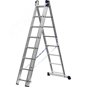 Лестница трехсекционная, алюминиевая, со стабилизатором, 8 ступеней