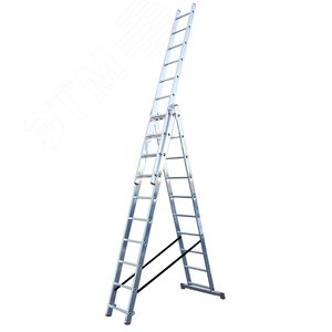 Лестница трехсекционная, алюминиевая, со стабилизатором, 11 ступеней