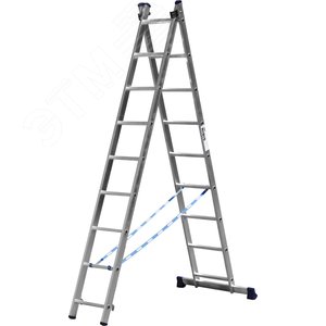 Лестница двухсекционная, алюминиевая, со стабилизатором, 9 ступеней